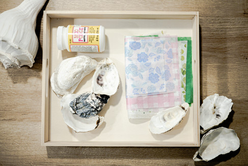 Enjoy your beautifully decoupaged oyster shells as decorative pieces or gifts!