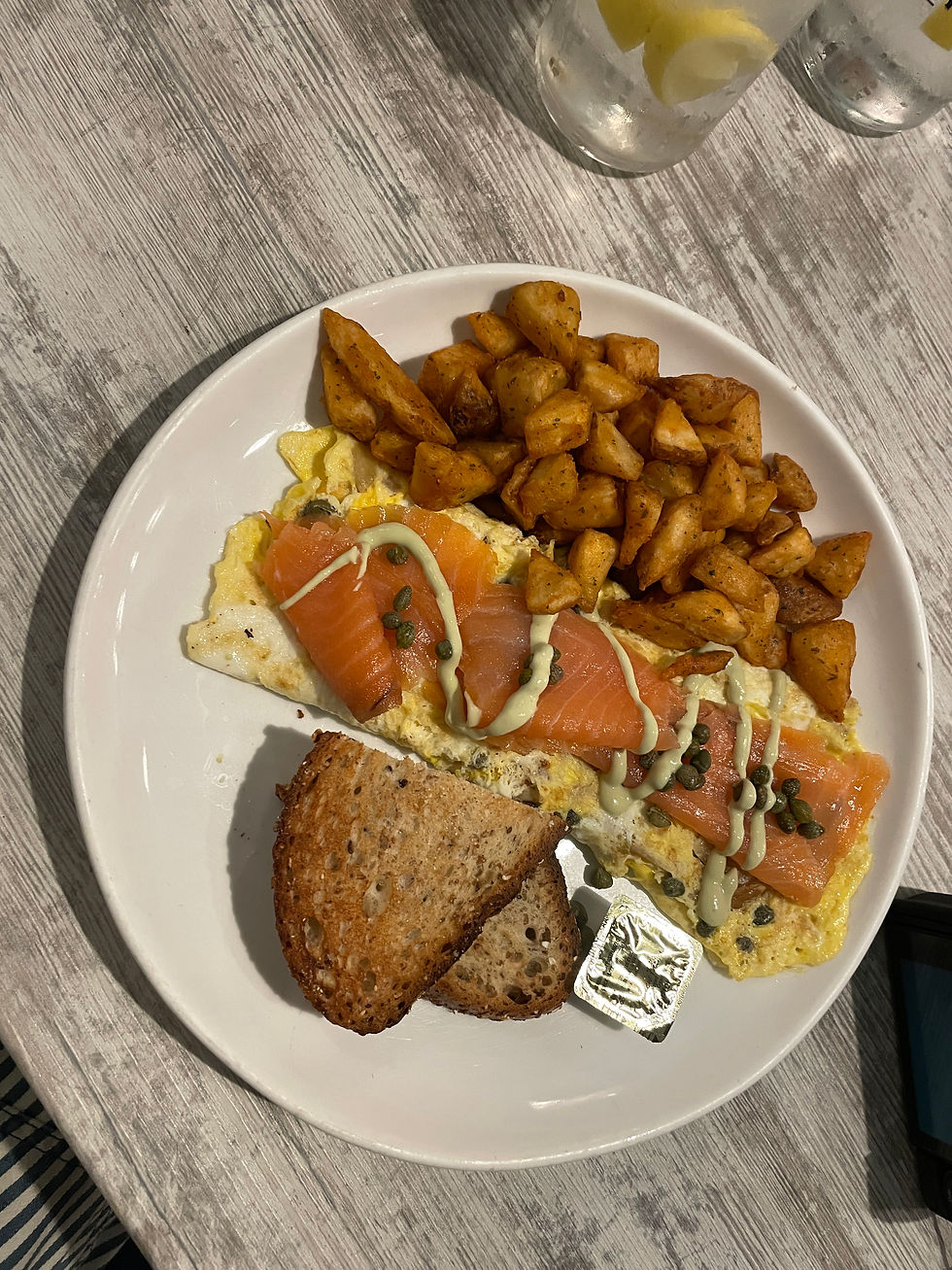 One of my first stops was Blueberry’s Grill, a well-loved local spot that absolutely lives up to its reputation. The space feels warm and inviting, creating a comfortable atmosphere to start your day.